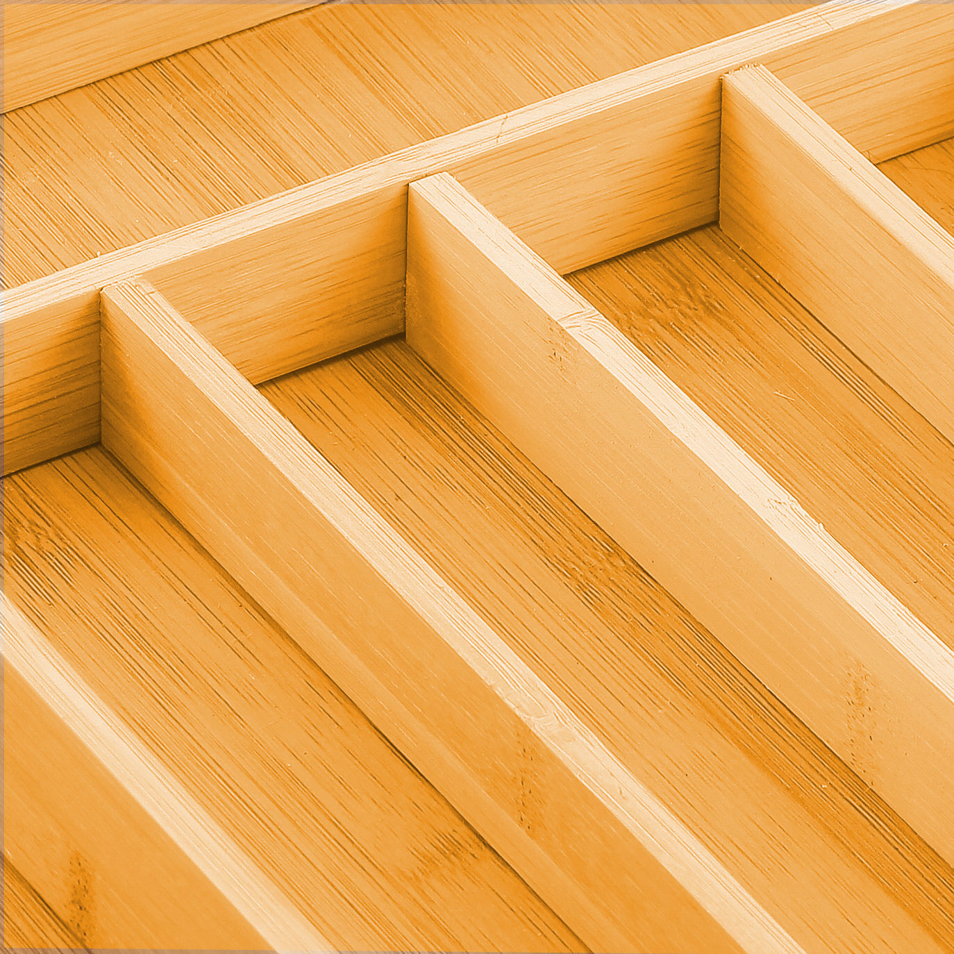 Expandable Bamboo Drawer Organiser โ 7-Compartment Cutlery Tray with Knife Block (37.5 ร 33.5 cm)