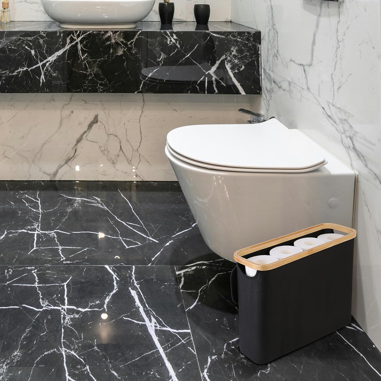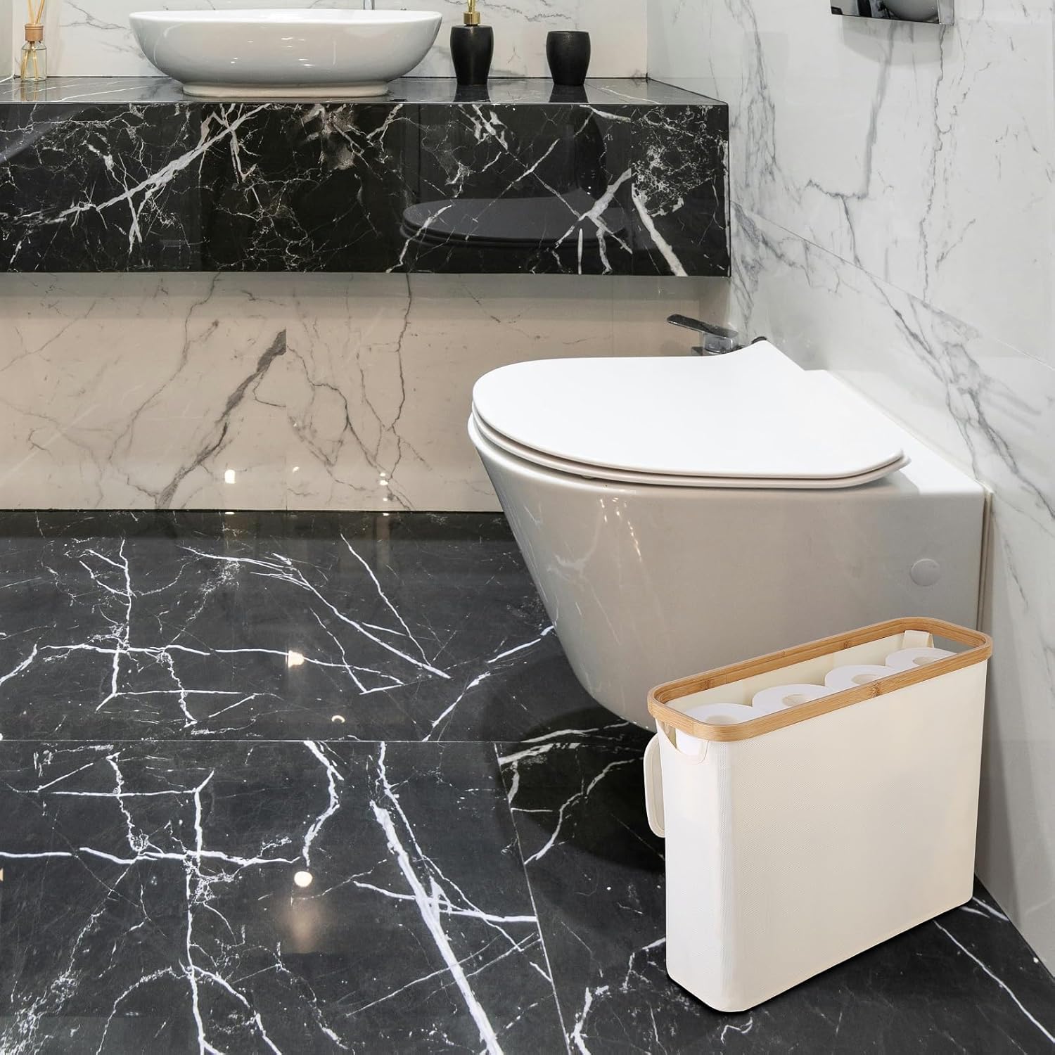 Crafted from water-repellent Oxford cloth with natural bamboo lids, each basket holds up to 12 regular rolls and fits neatly in RV closets, under sinks, or tight corners. Lightweight and foldable, theyβre ideal for renters, mobile homes, or multi-bathroom households.
