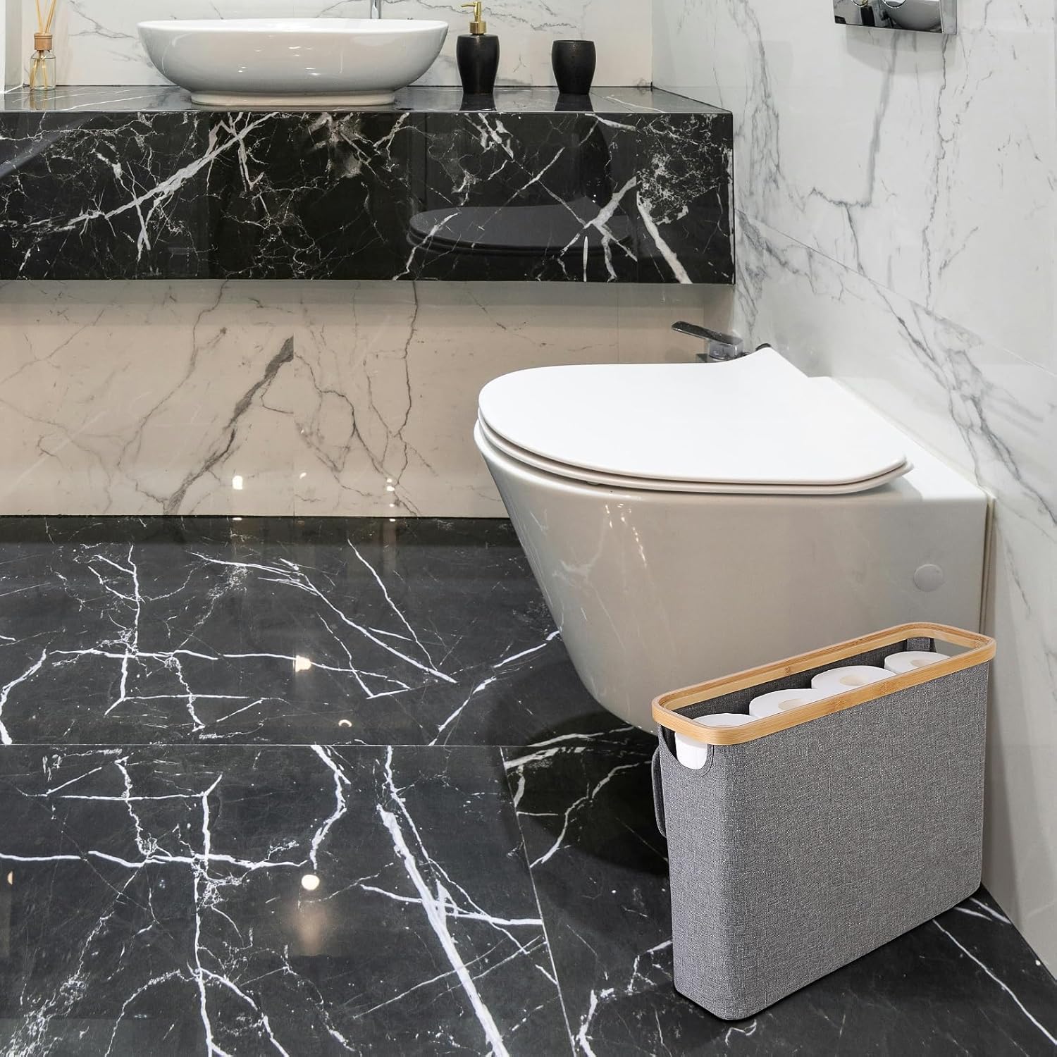 π§» Keep your bathroom stocked and stylish with this compact toilet paper basket β designed for small spaces and smart storage.